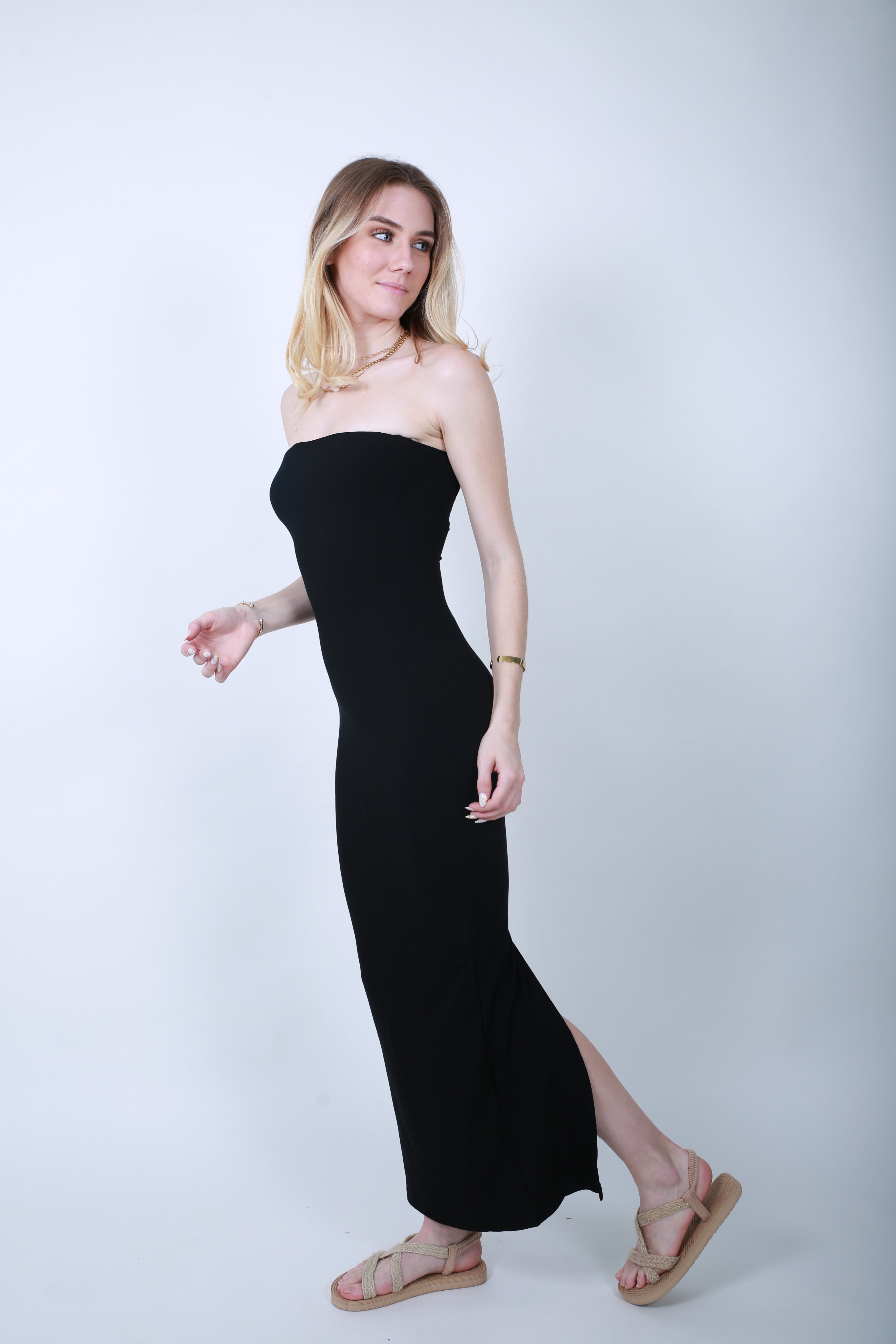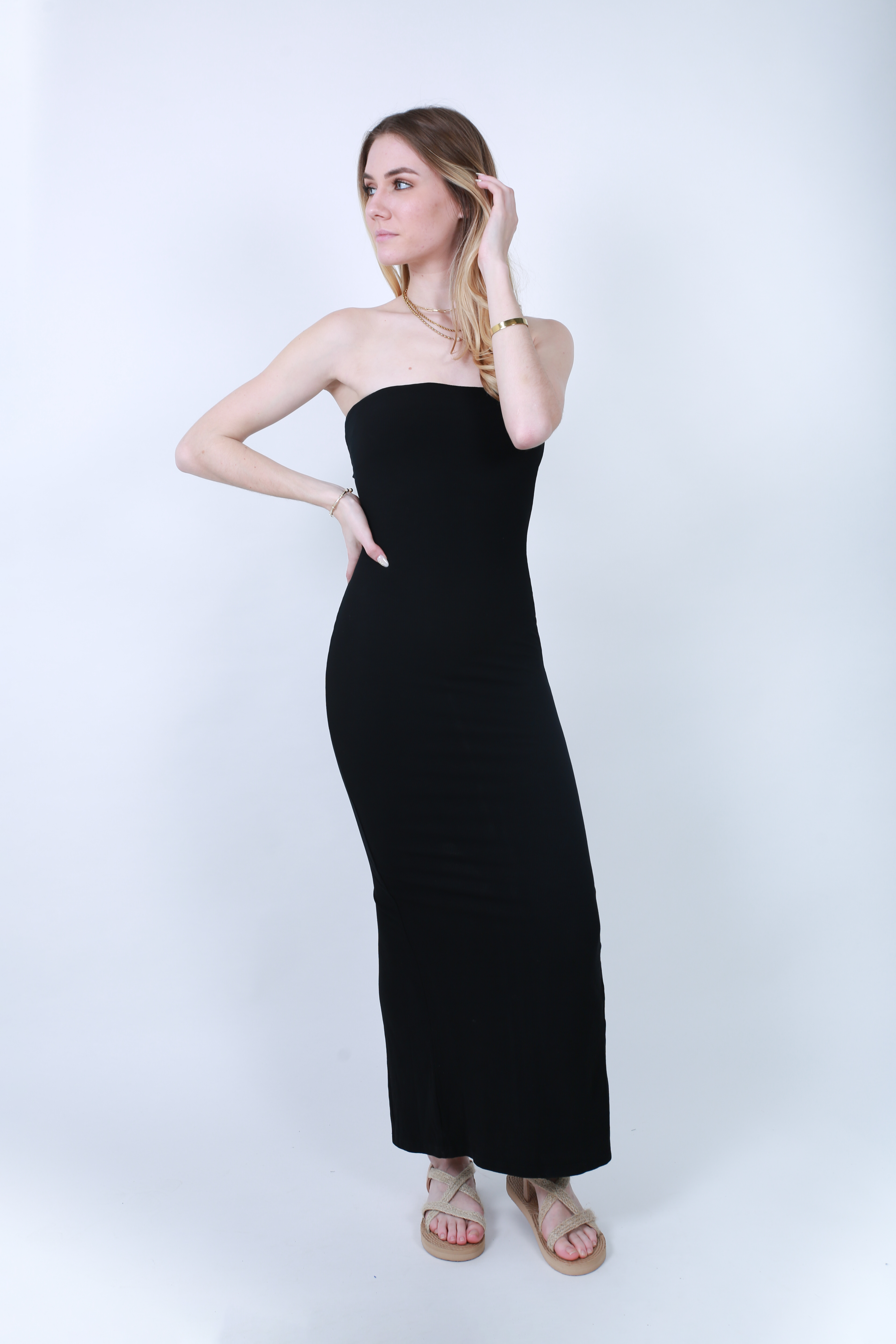 • ROBE BANDEAU CÔTELÉE