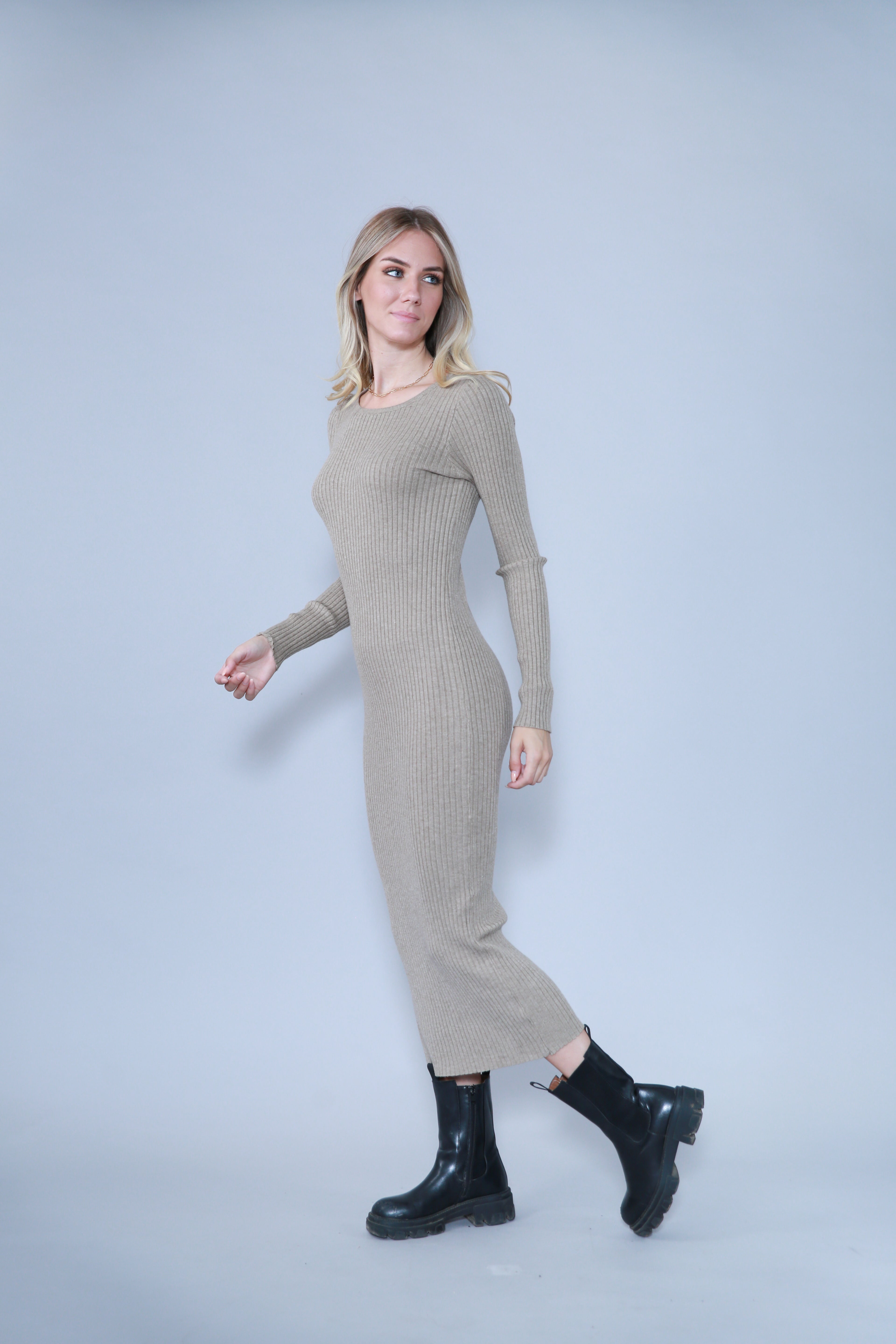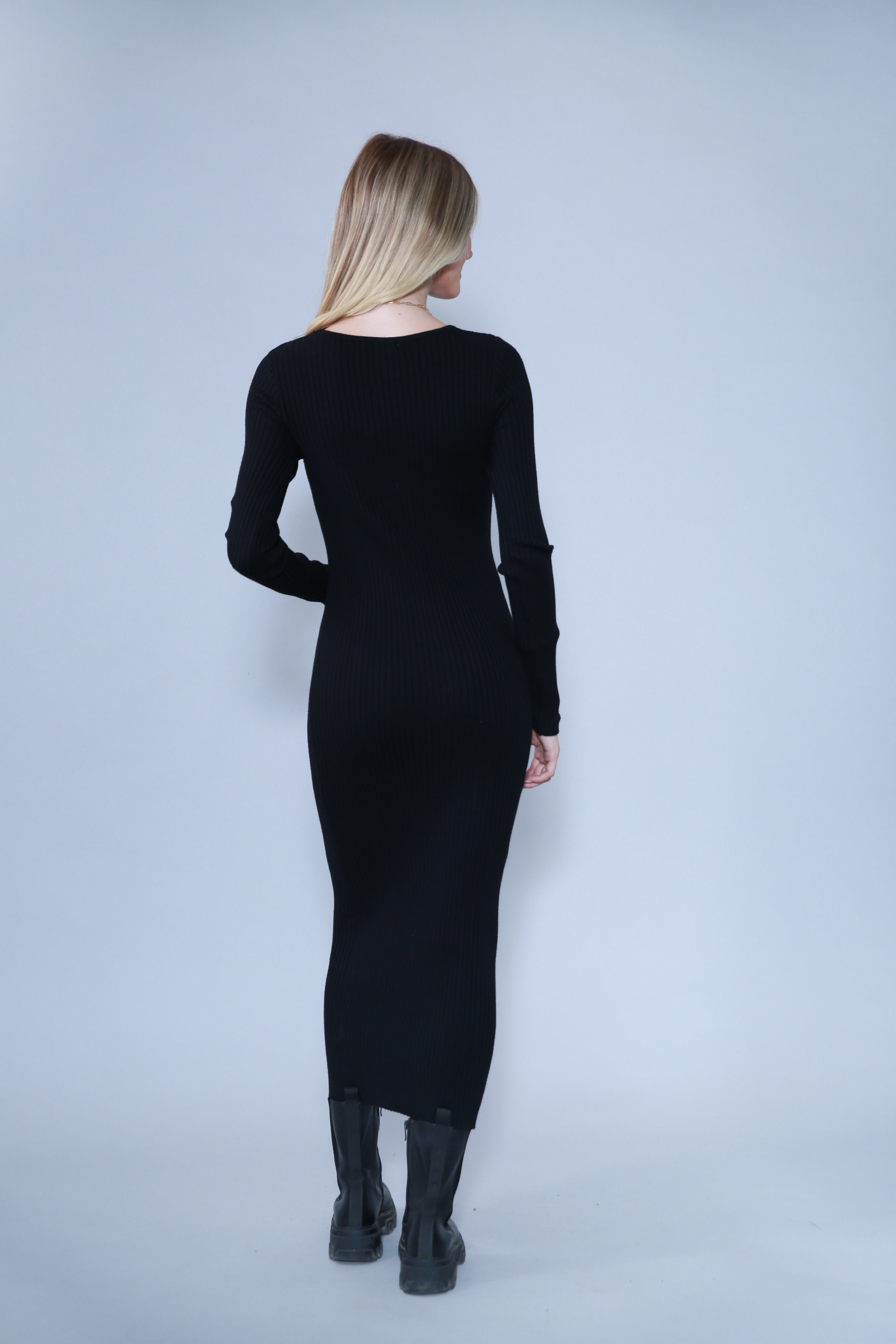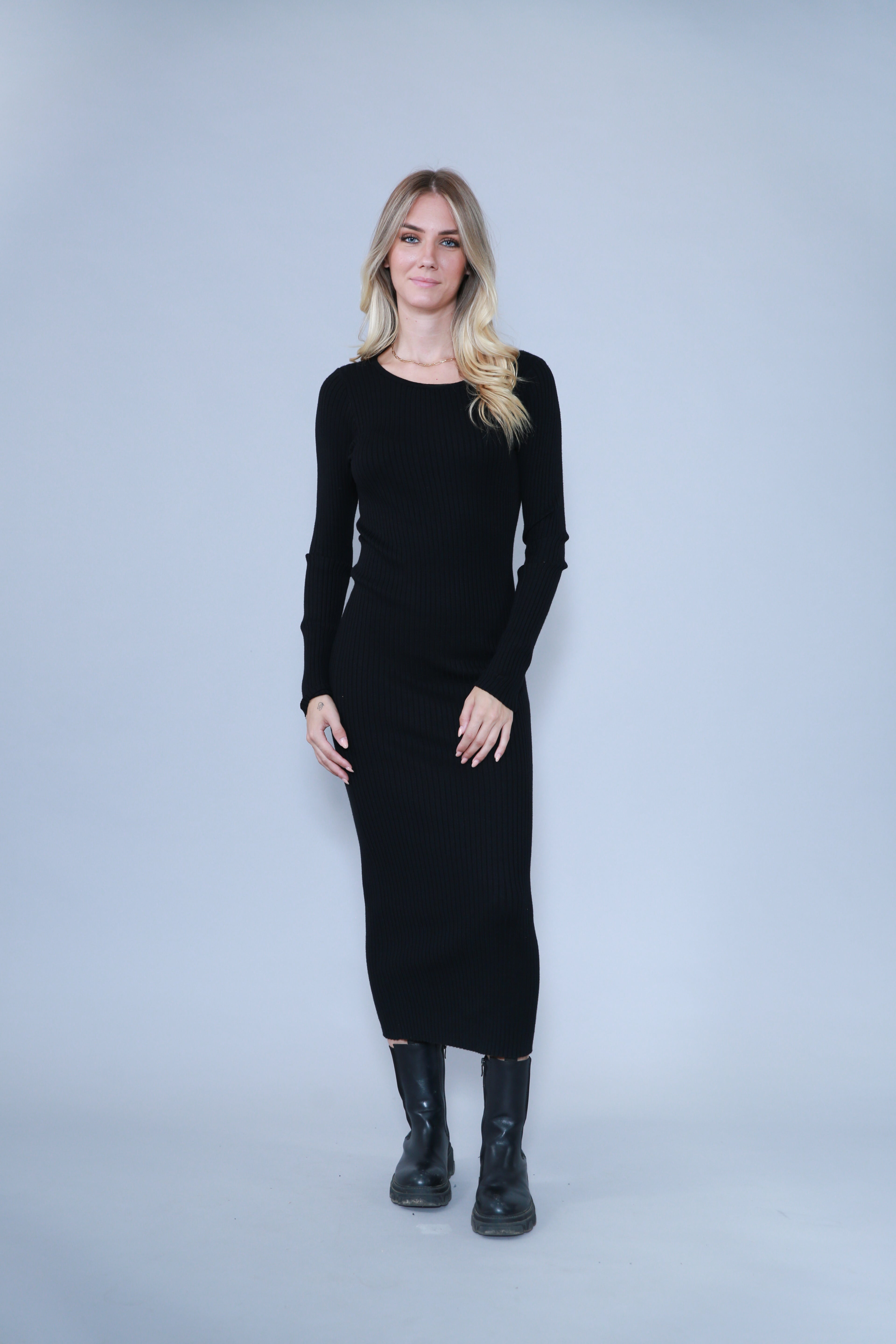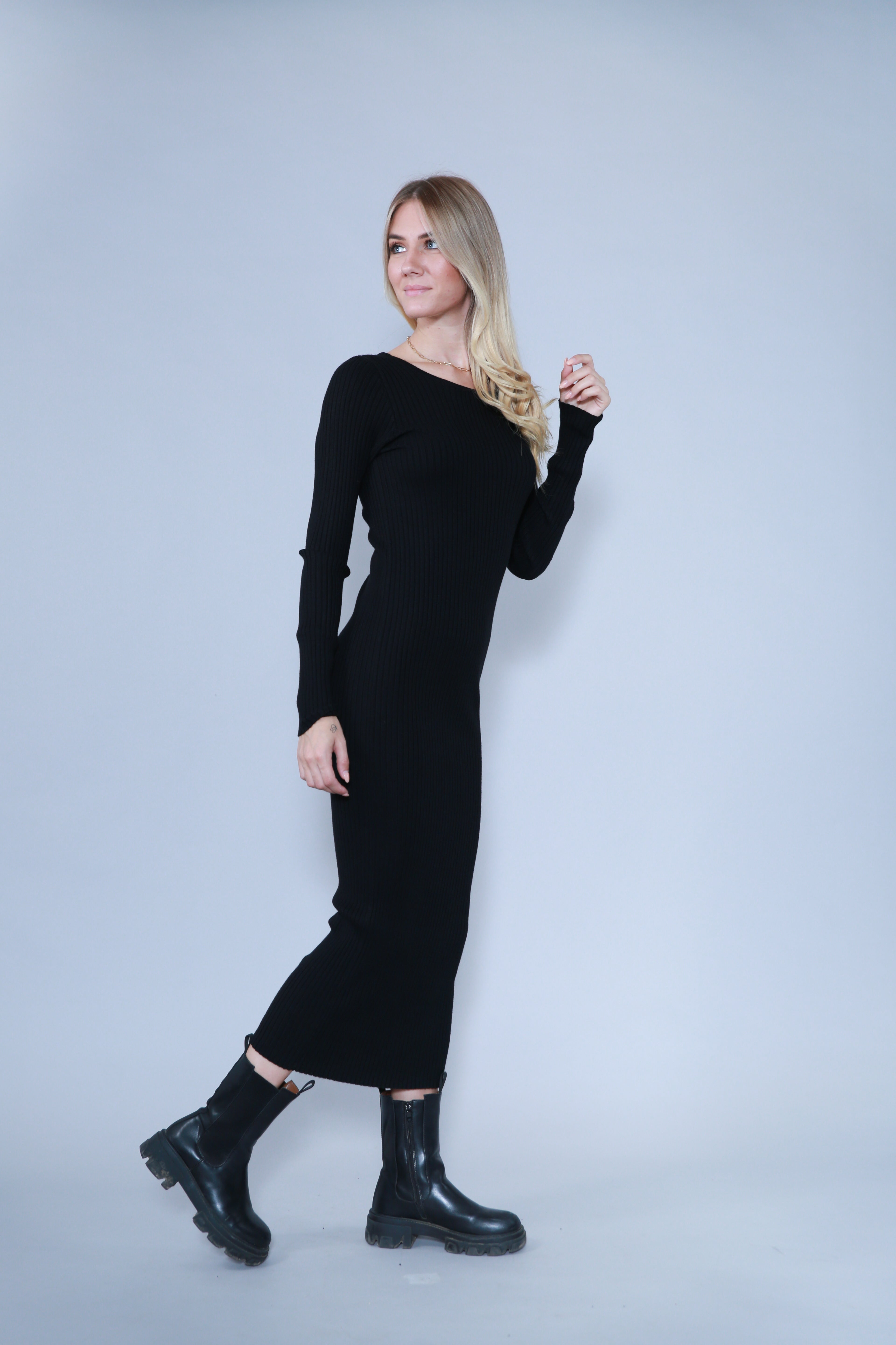 • ROBE LONGUE EN MAILLE À COL ROND