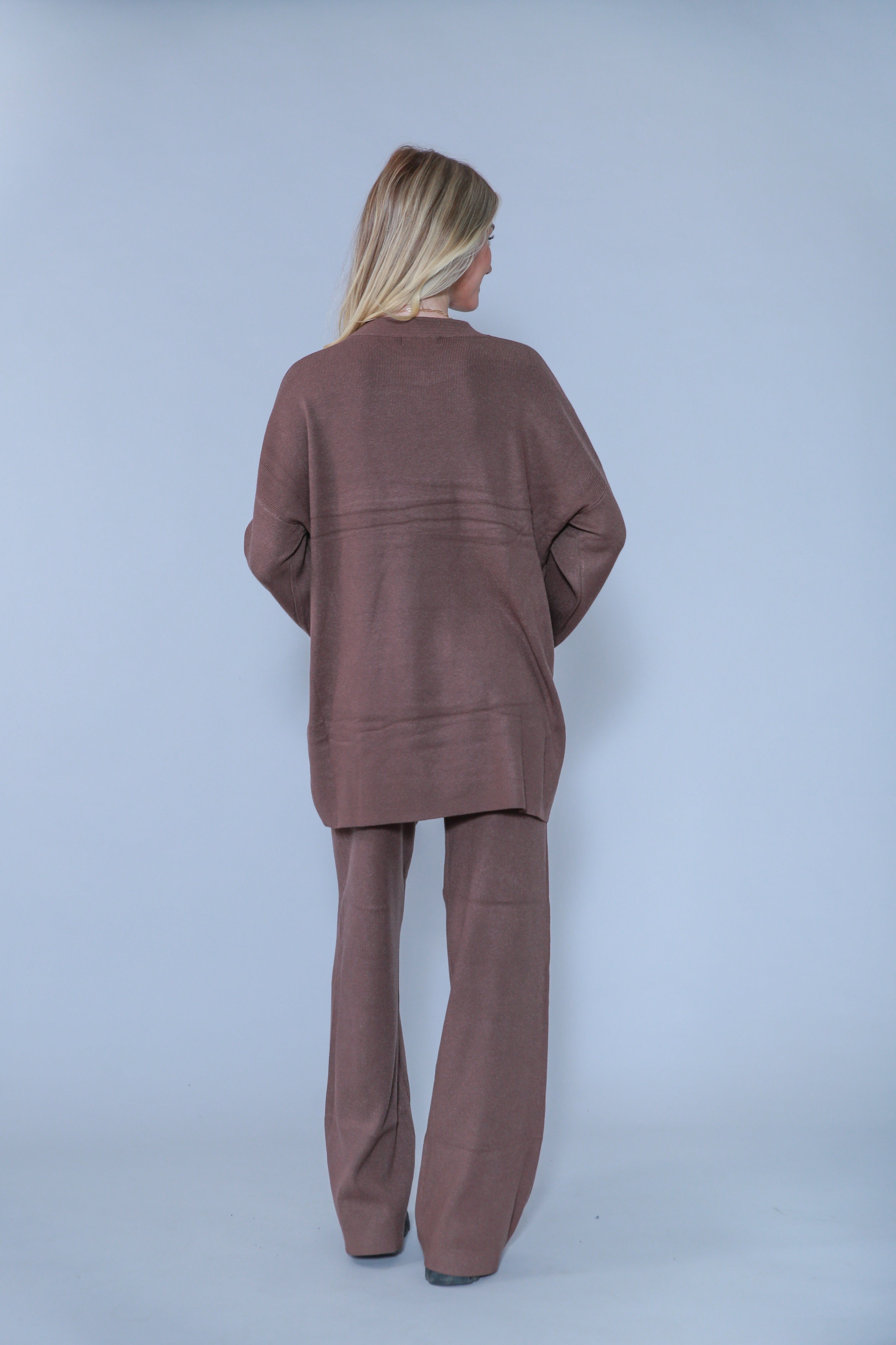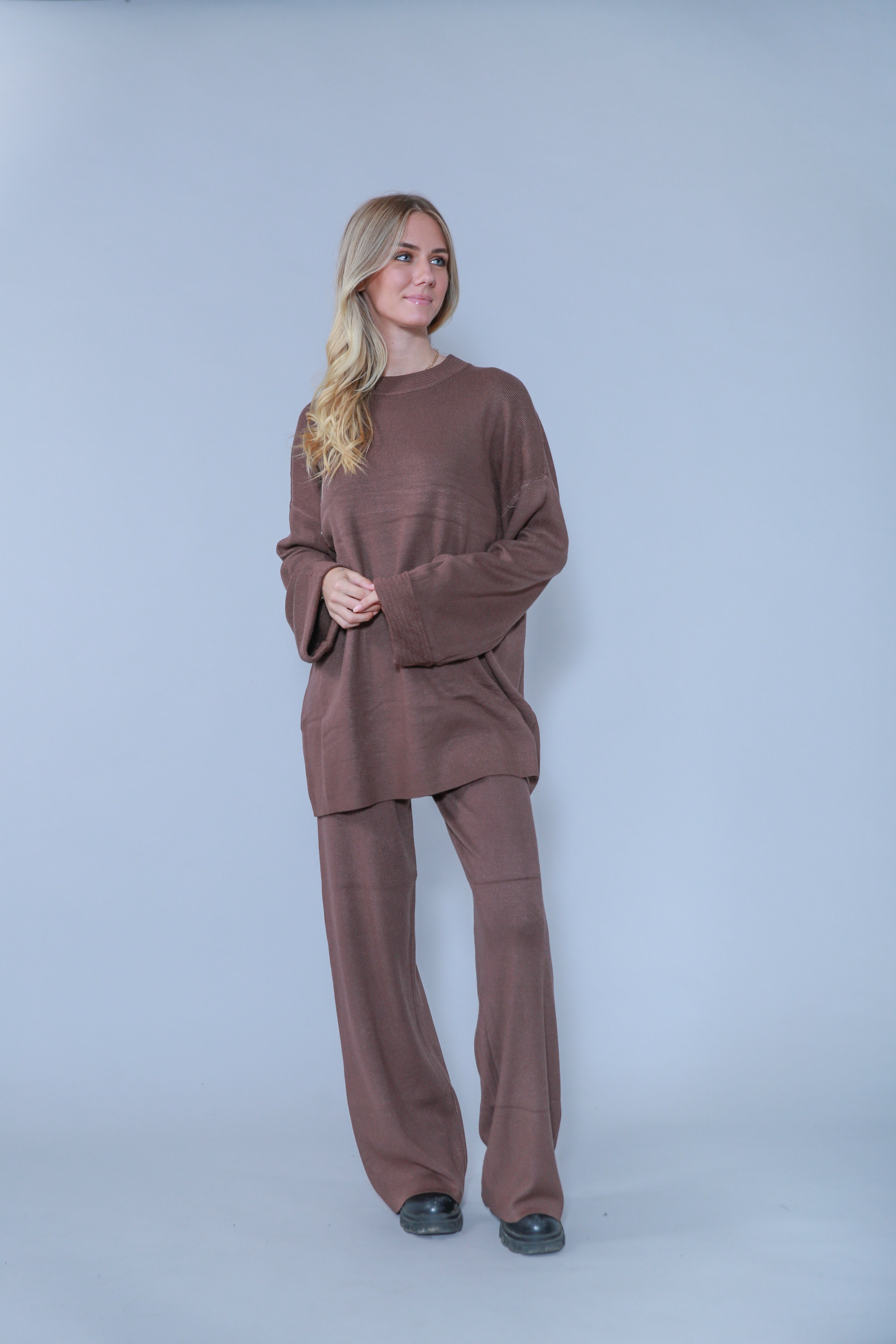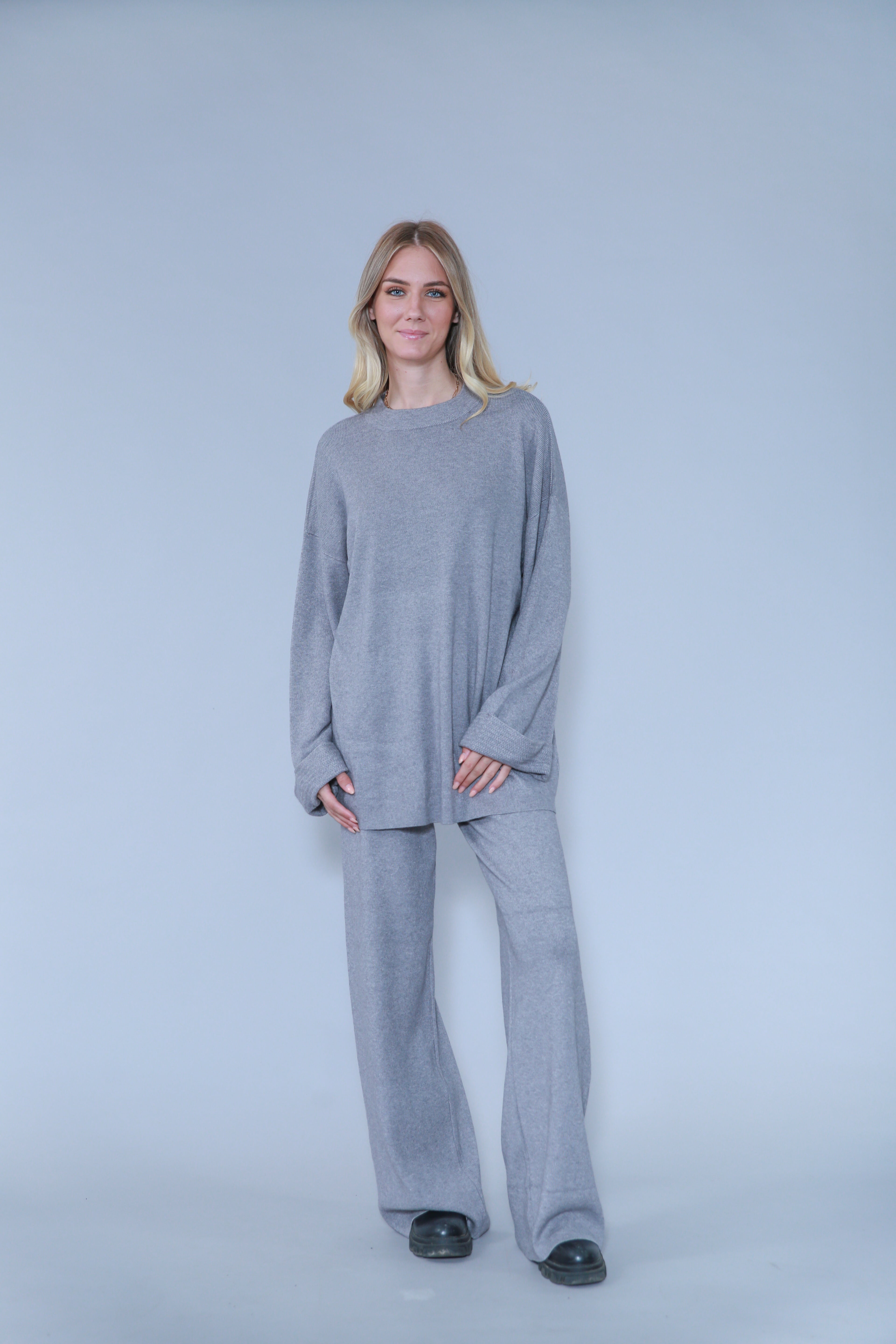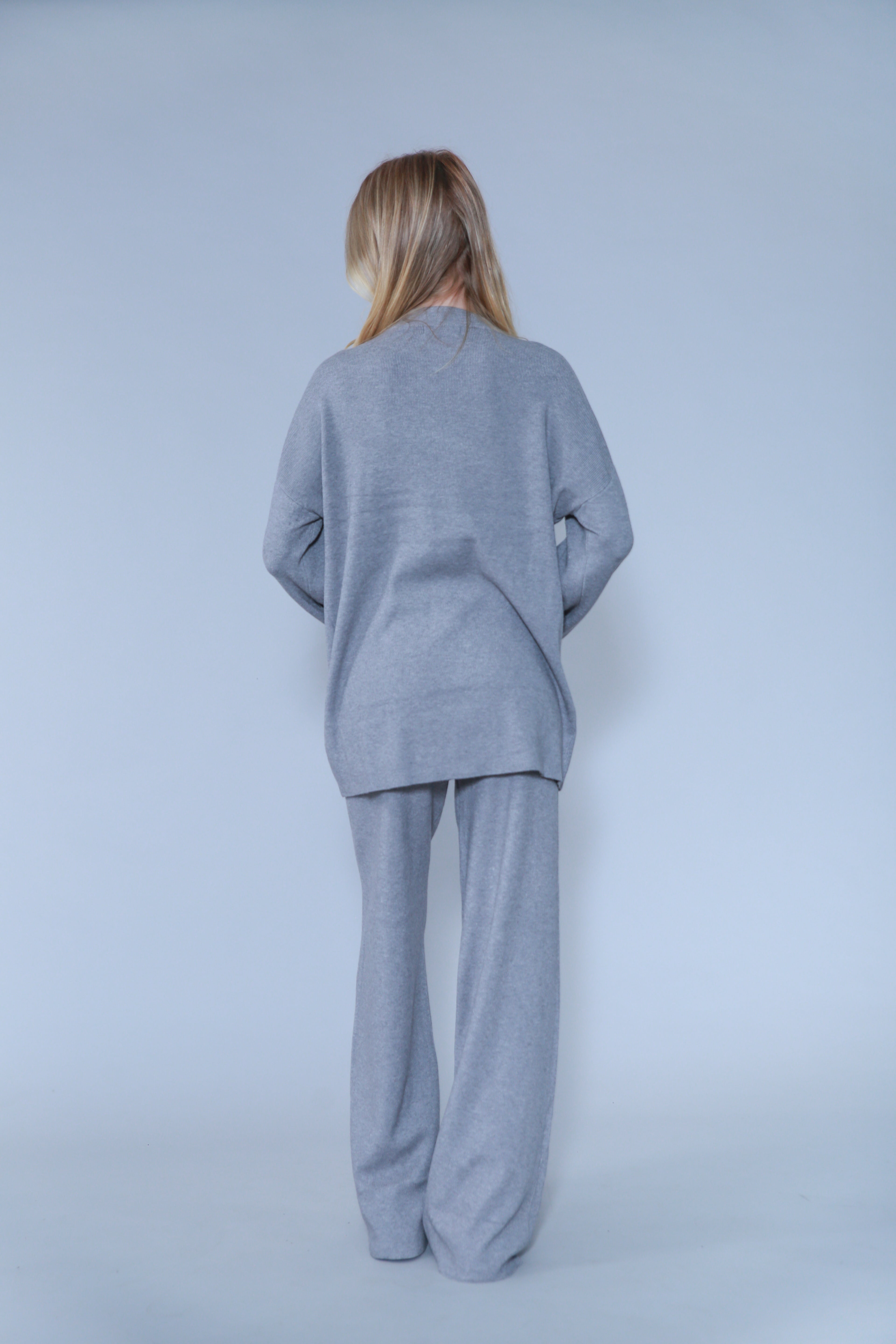 ENSEMBLE EN MAILLE PULL COL ET MANCHES À DÉTAILLE & PANTALON UNIS