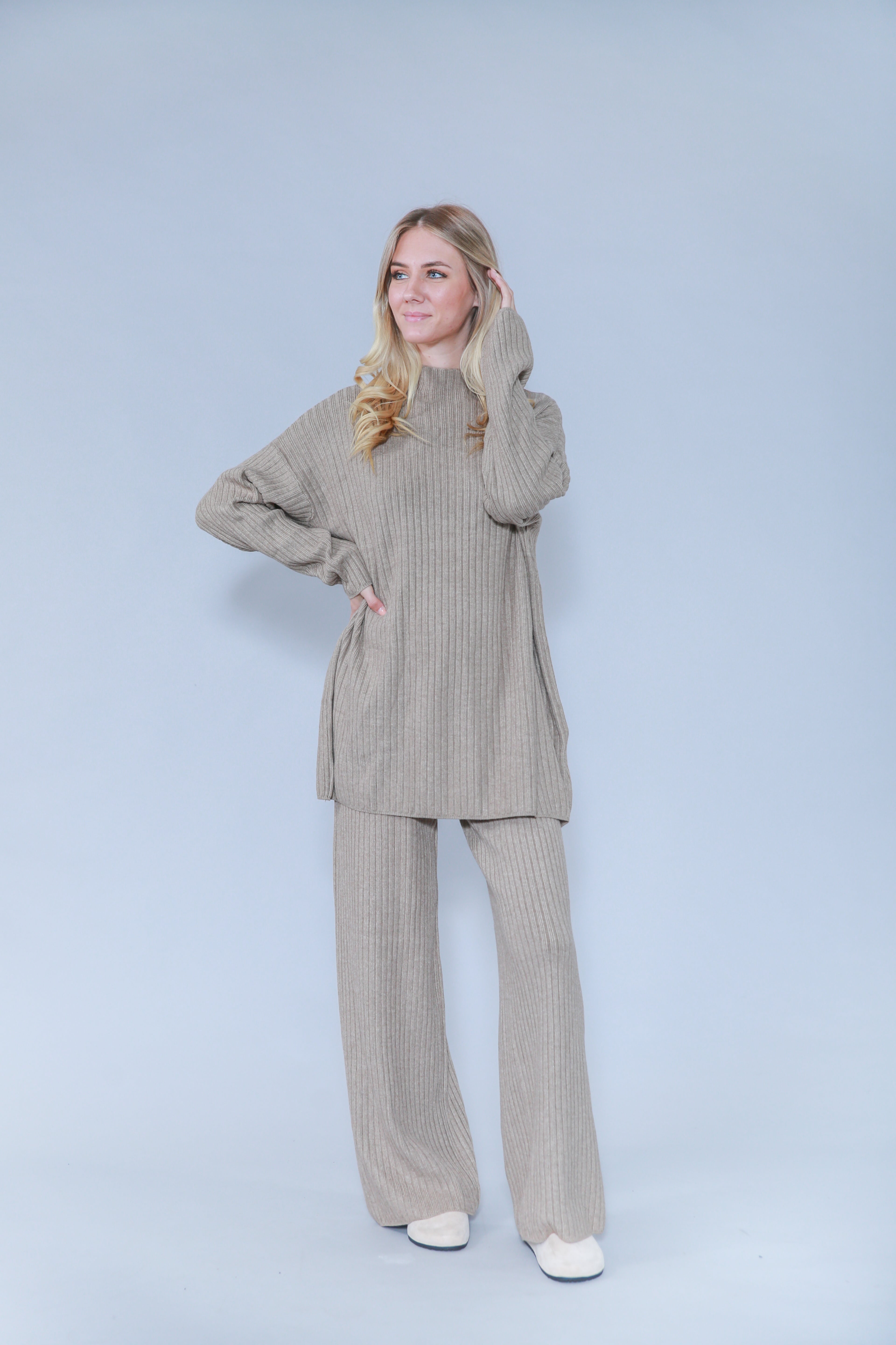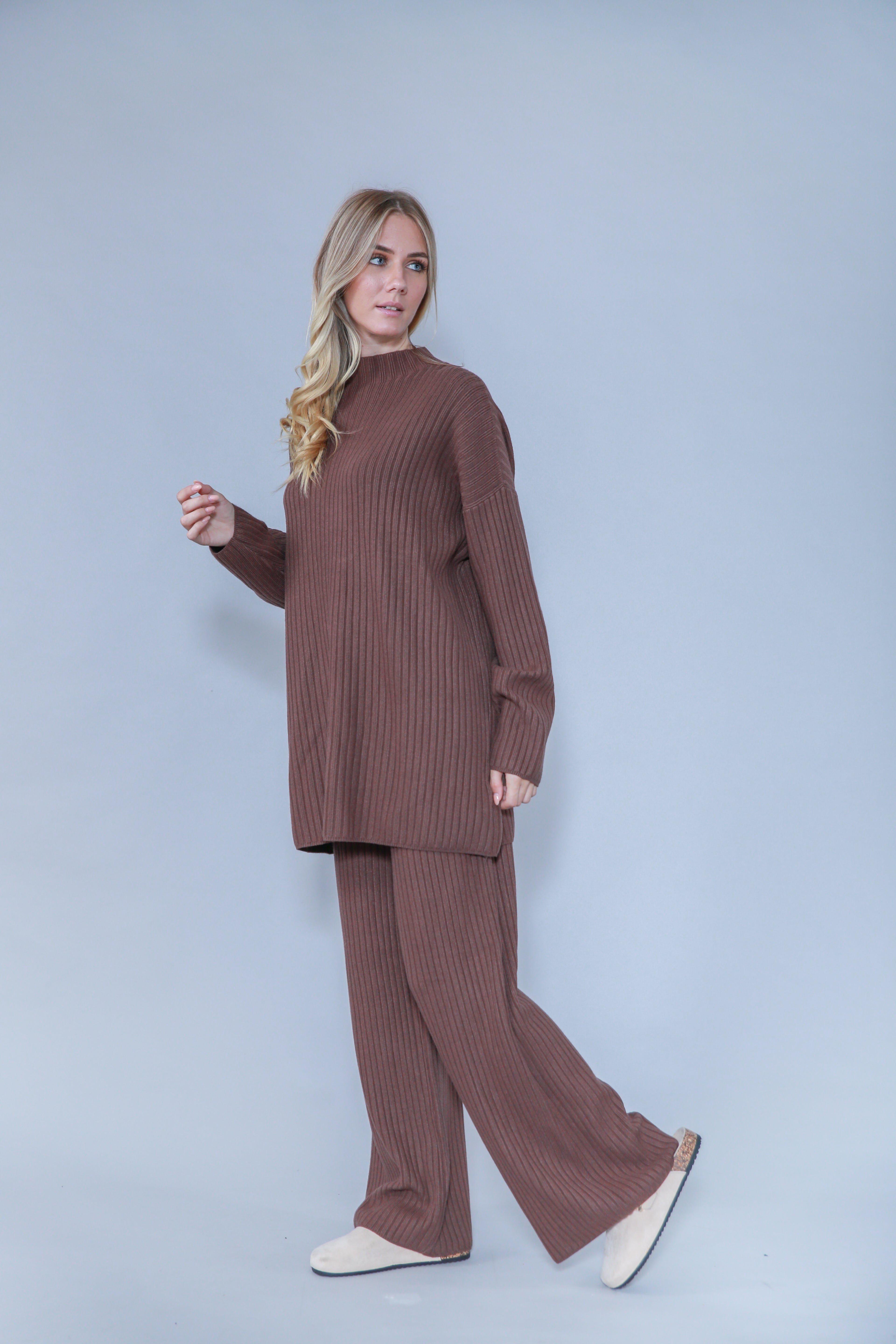 ENSEMBLE PULL & PANTALON EN MAILLE COTELÉE