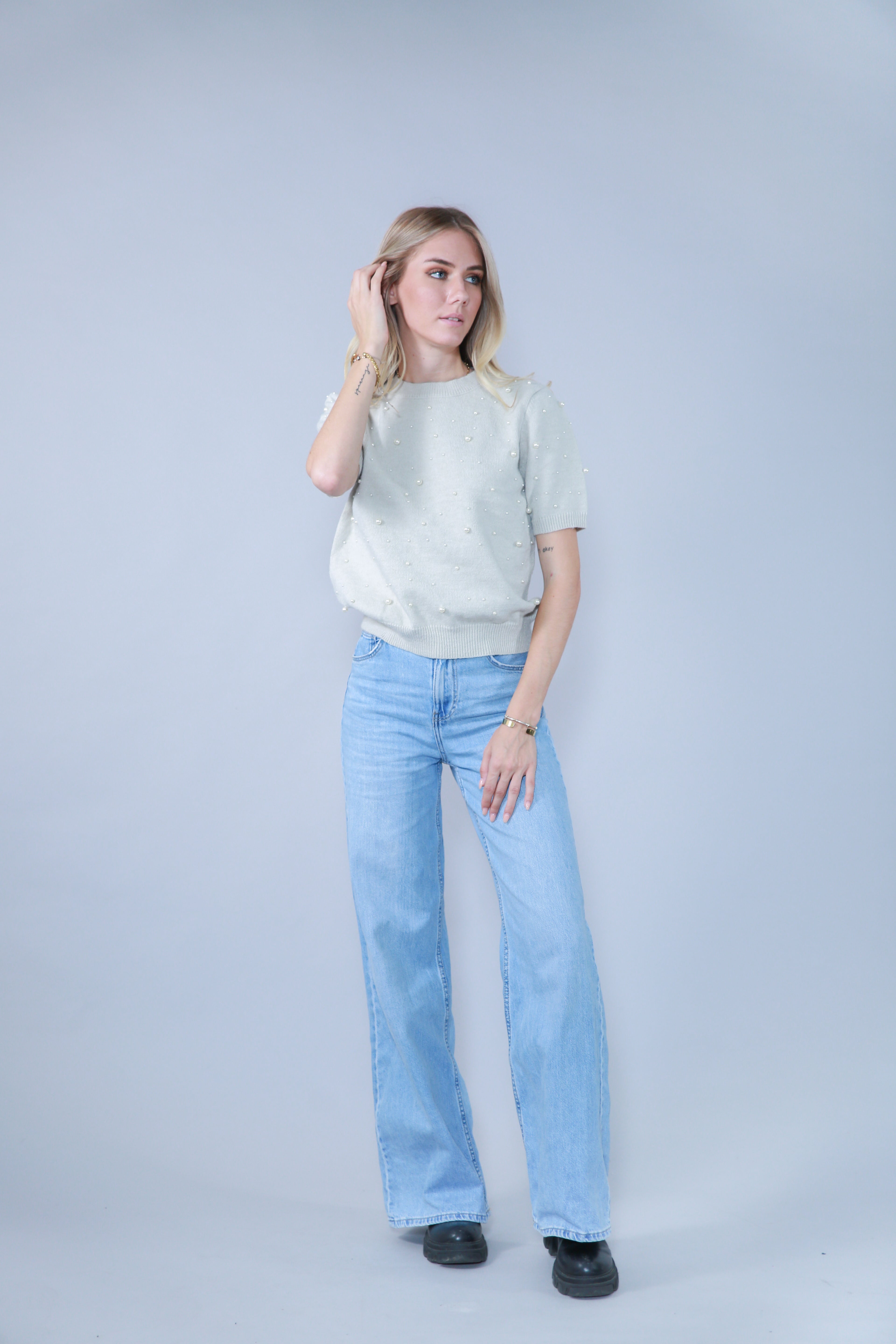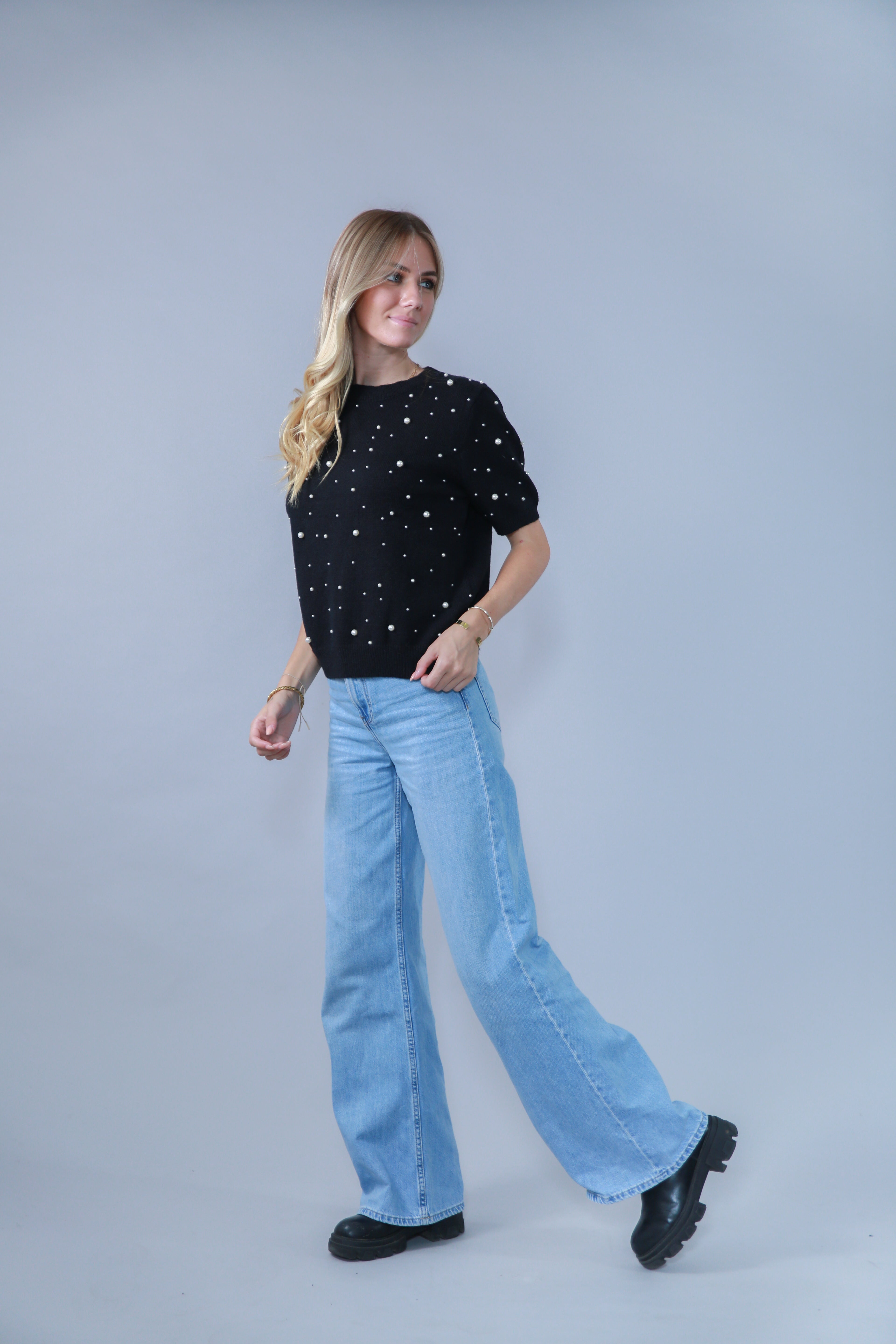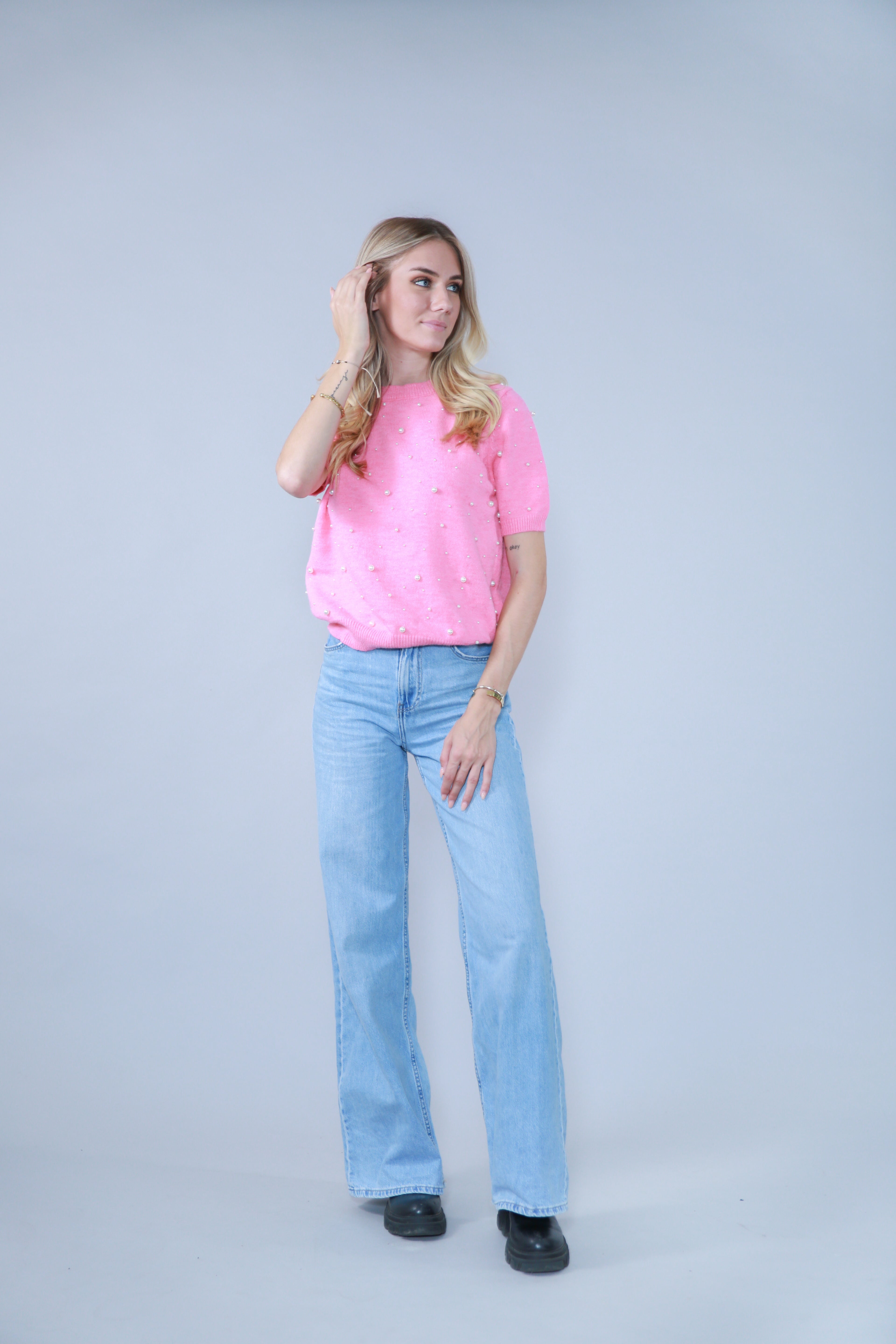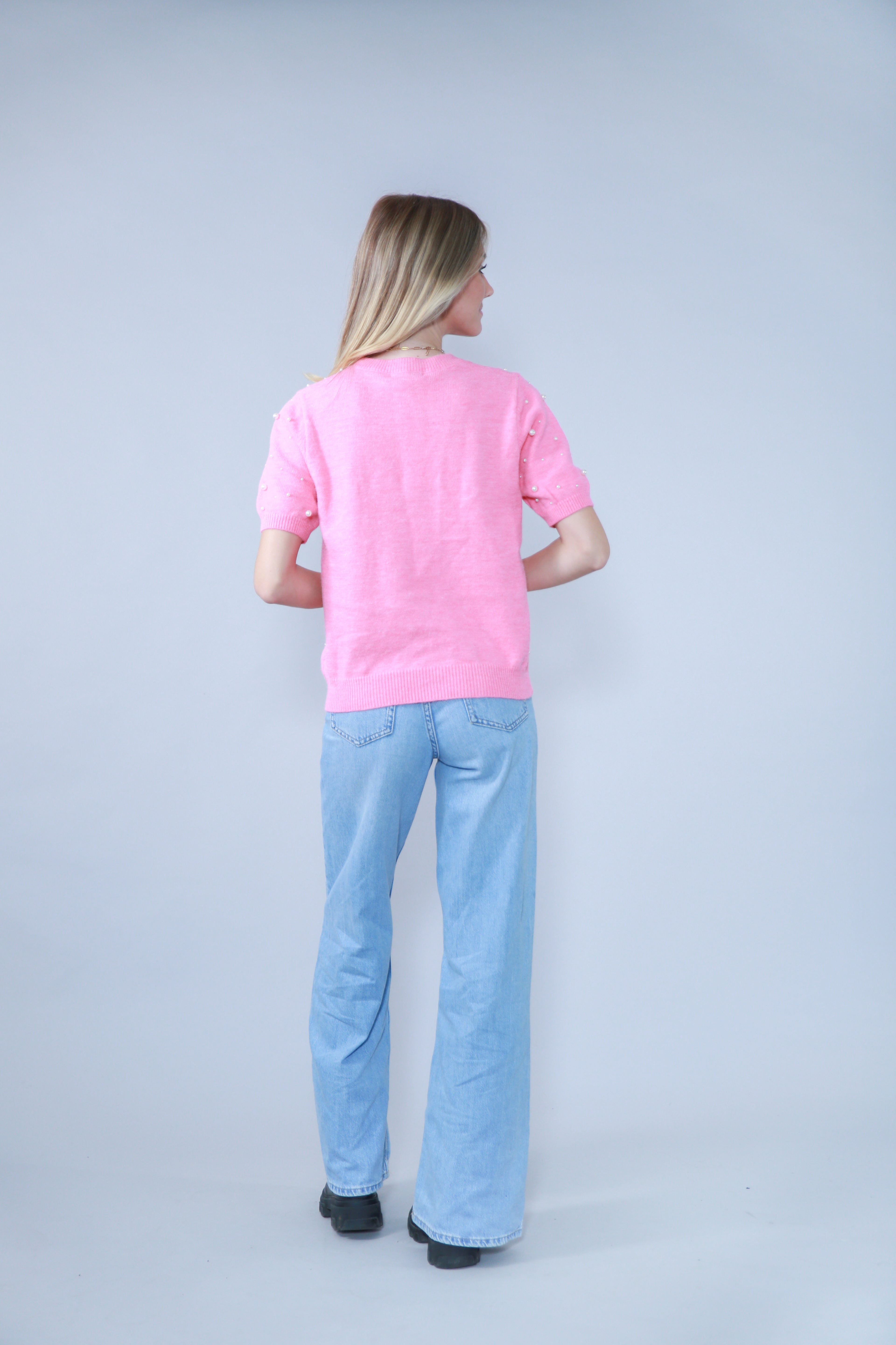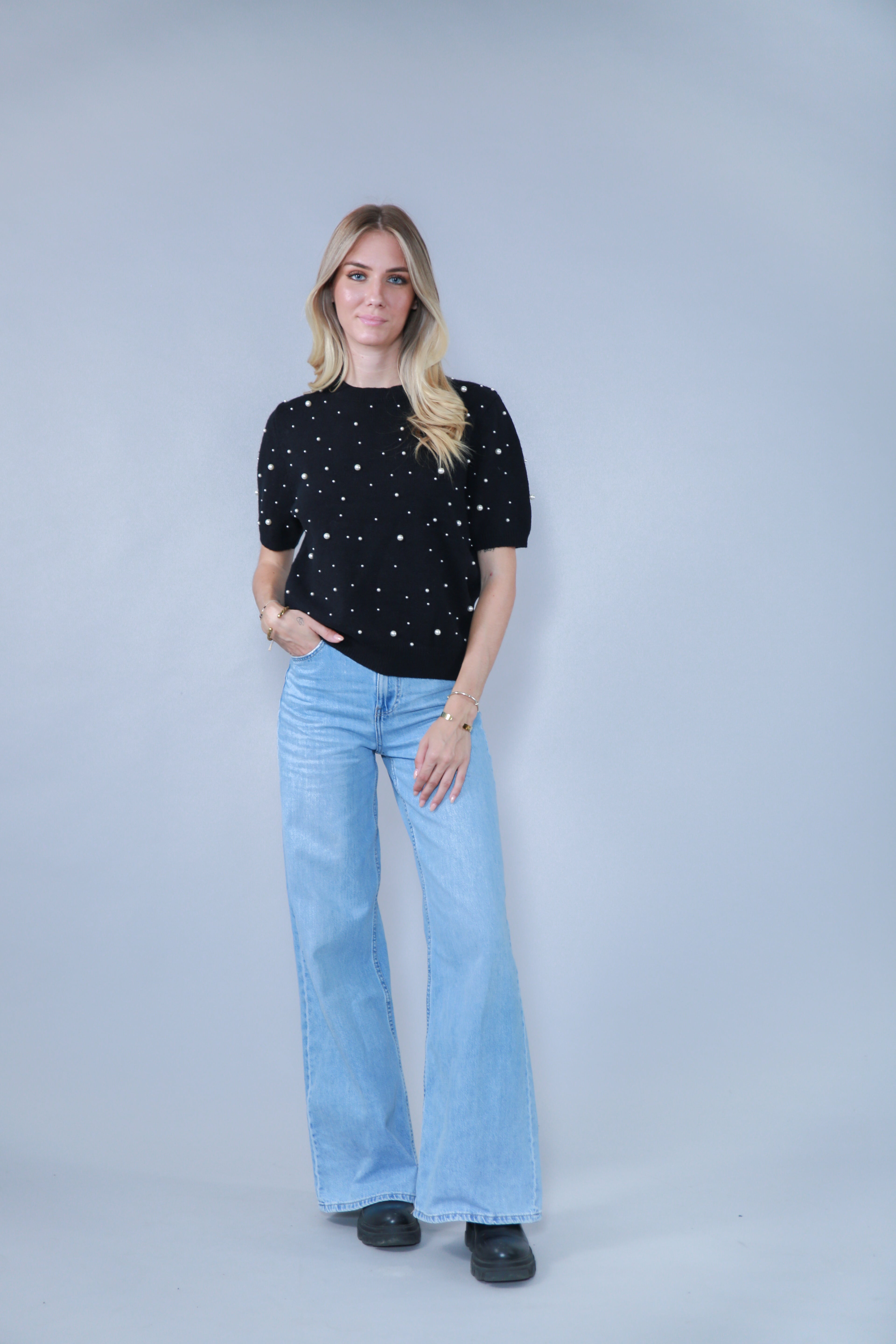 TOP MANCHES COURTES AVEC PERLES EN MAILLE
