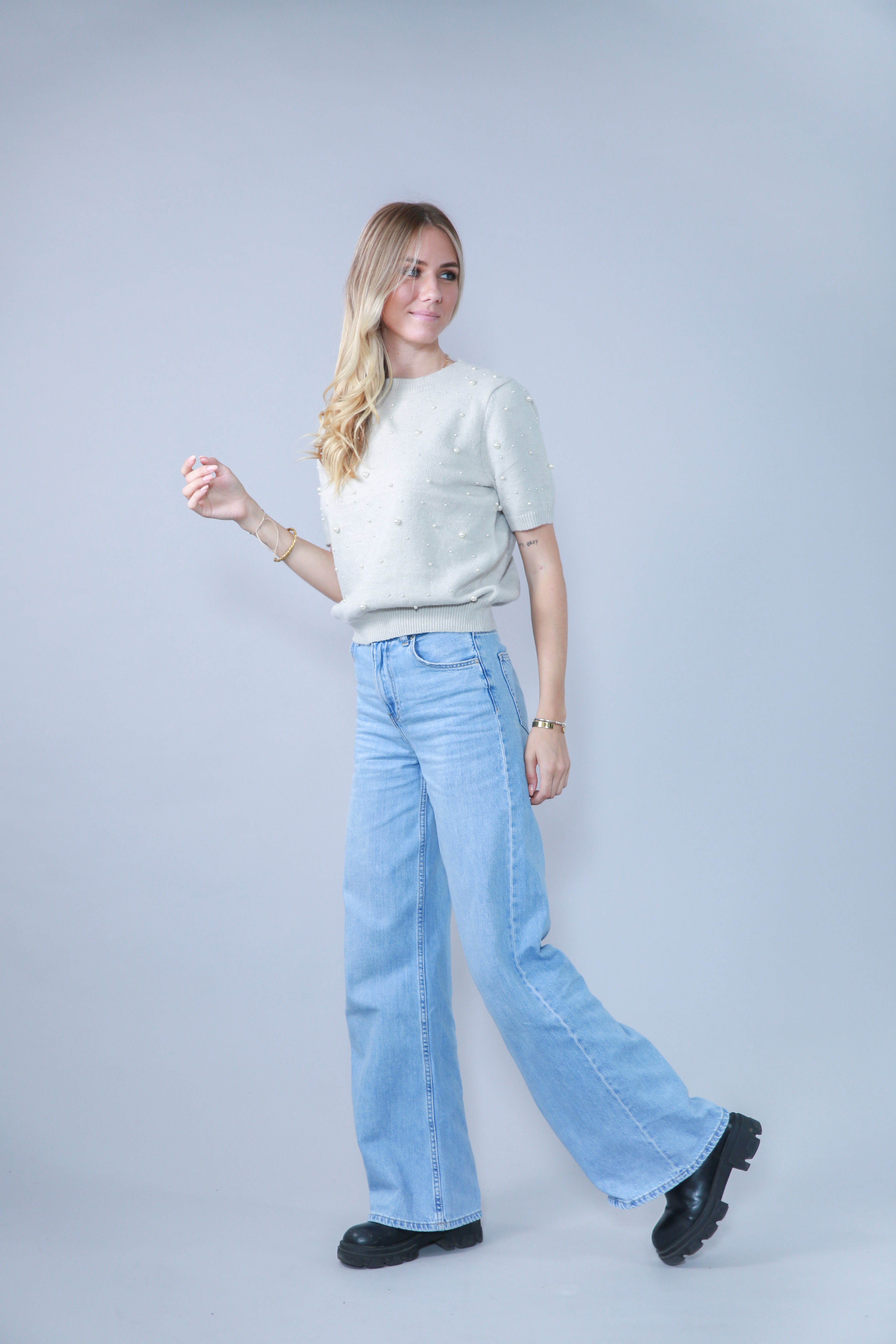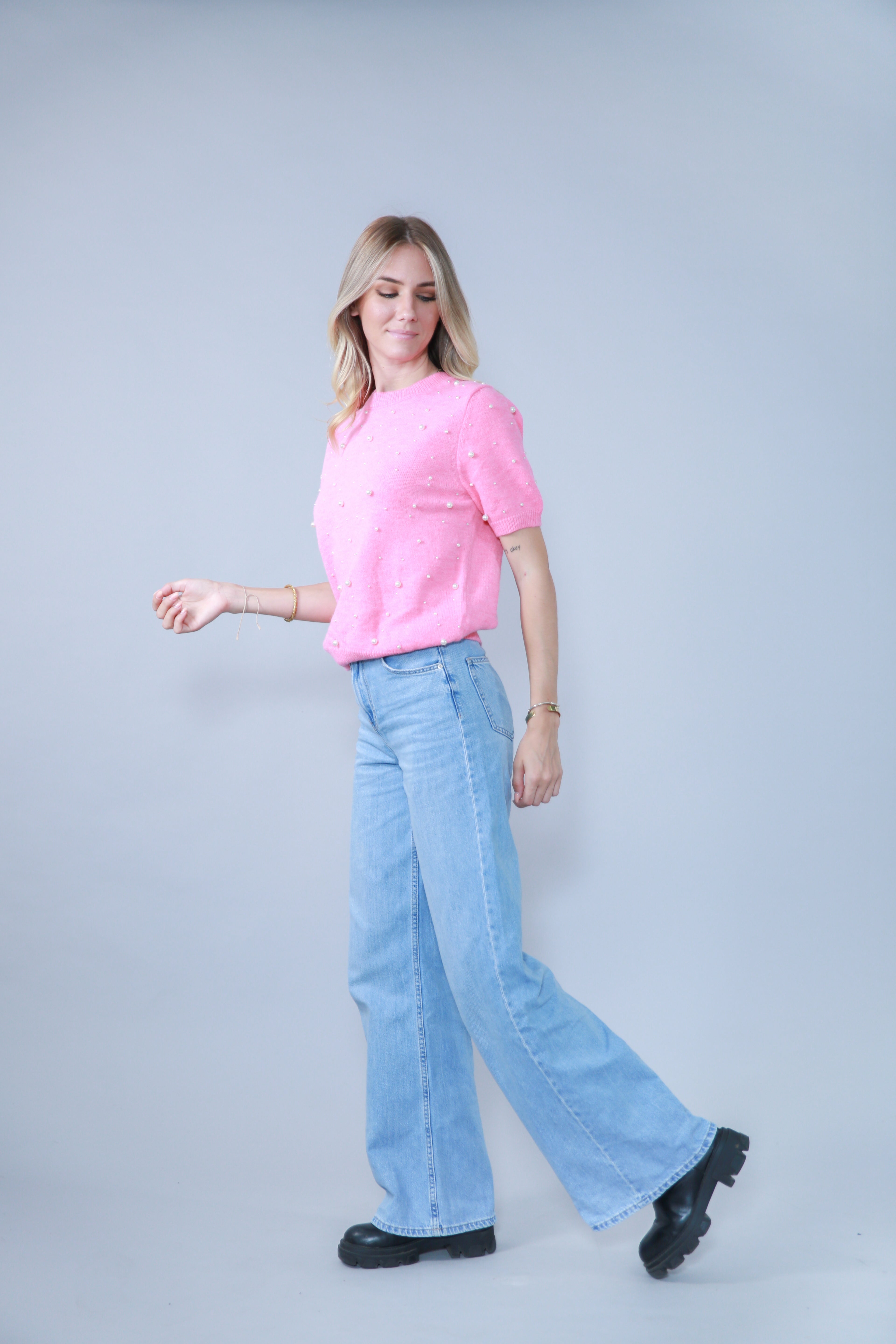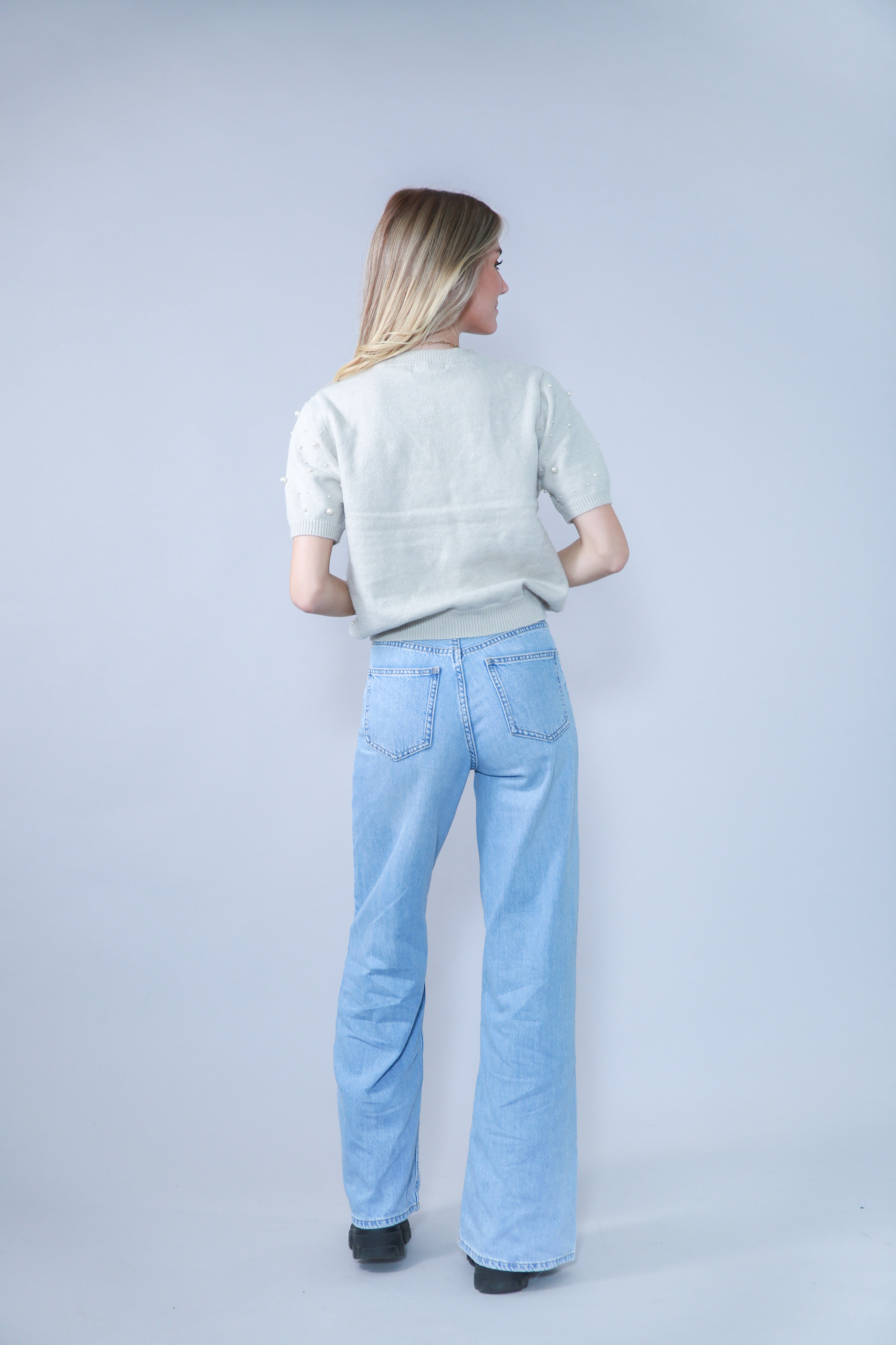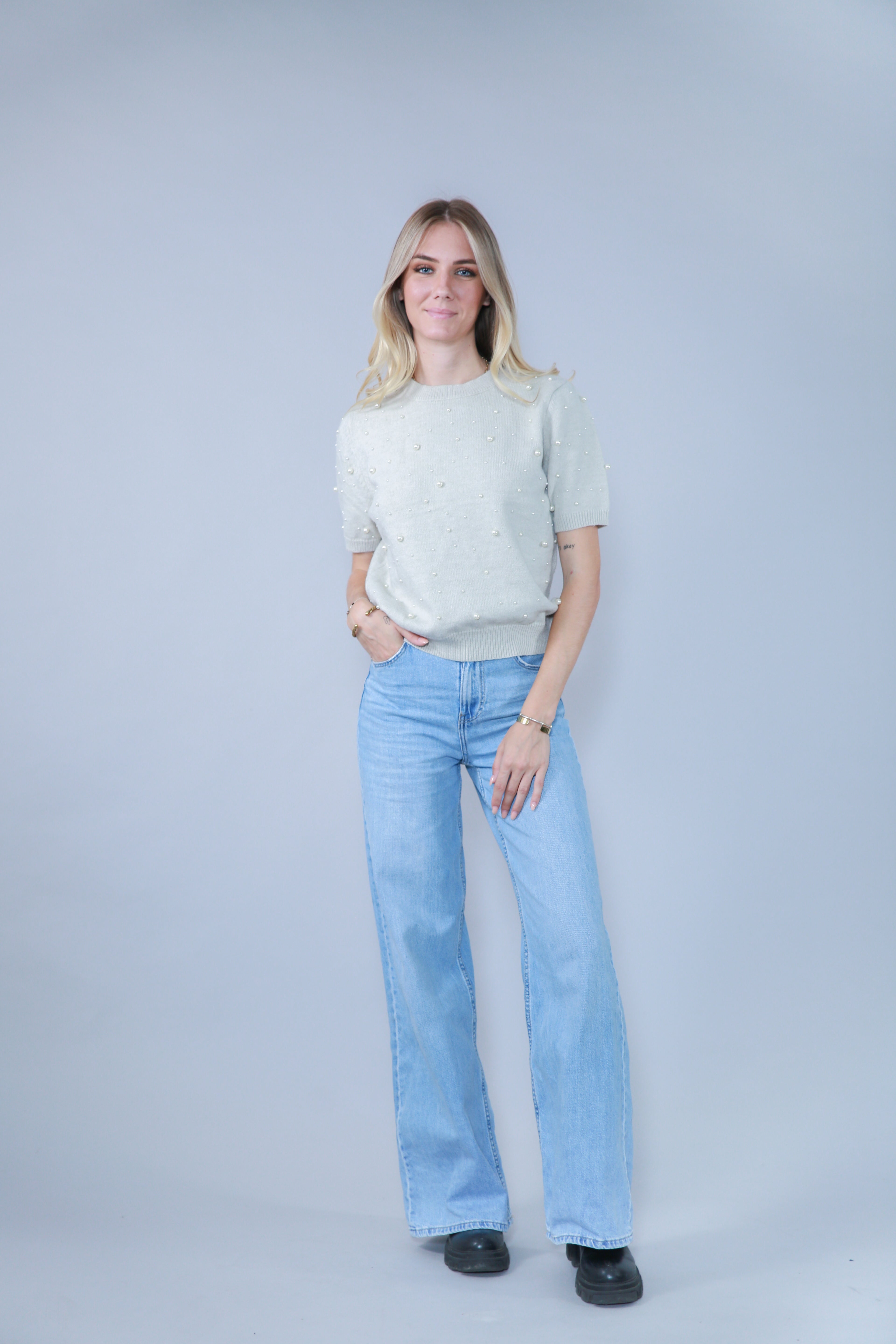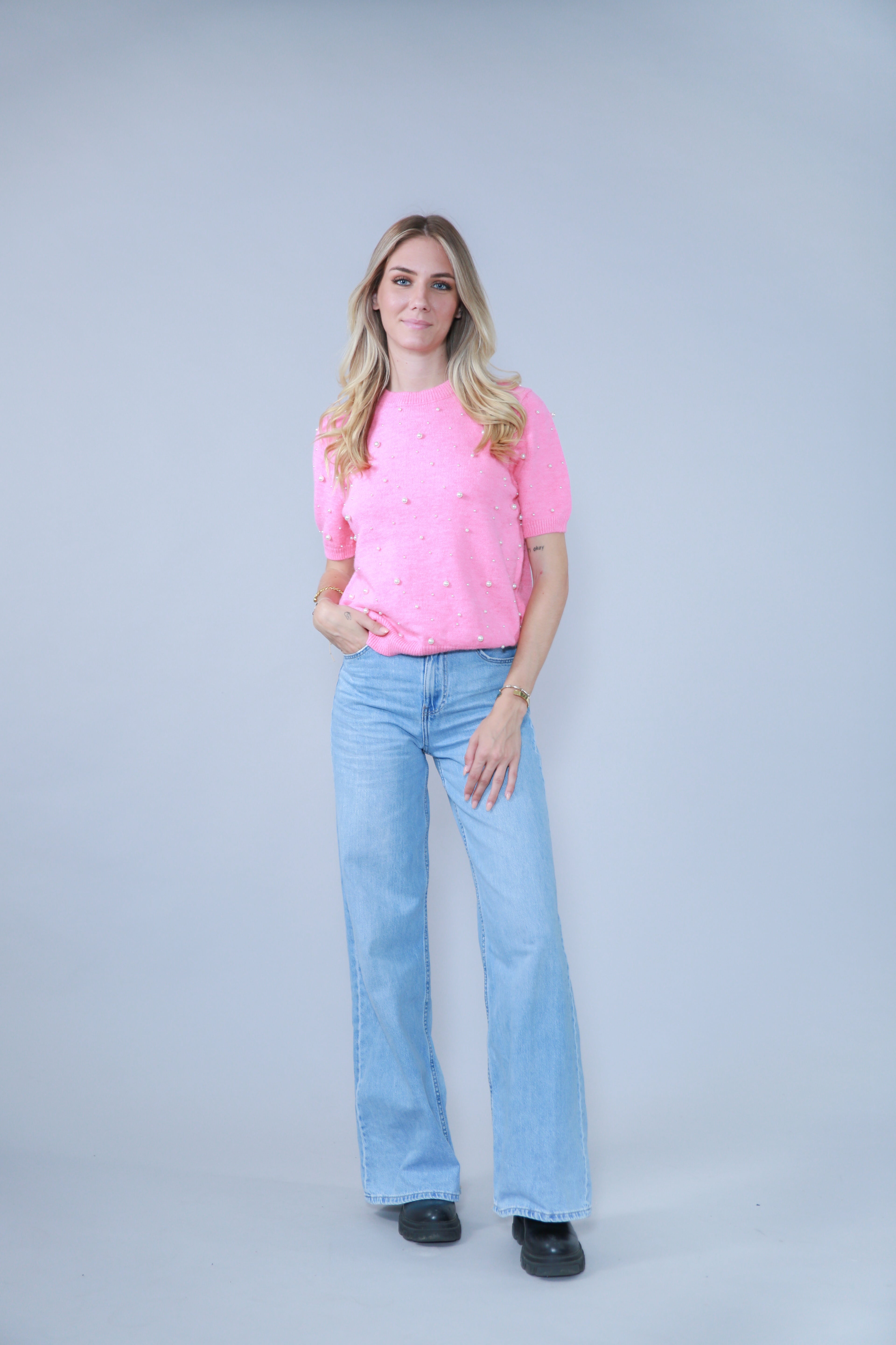 TOP MANCHES COURTES AVEC PERLES EN MAILLE