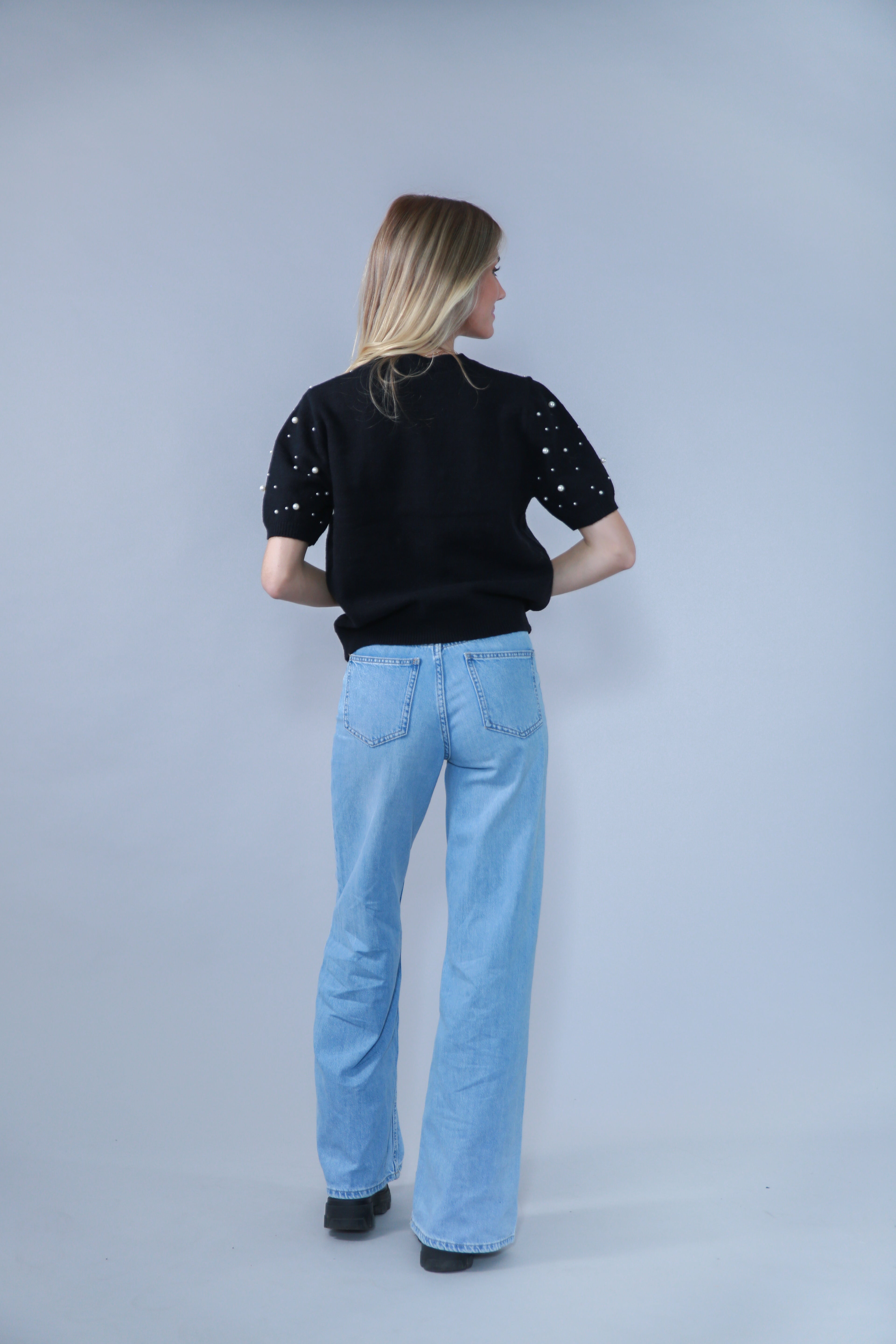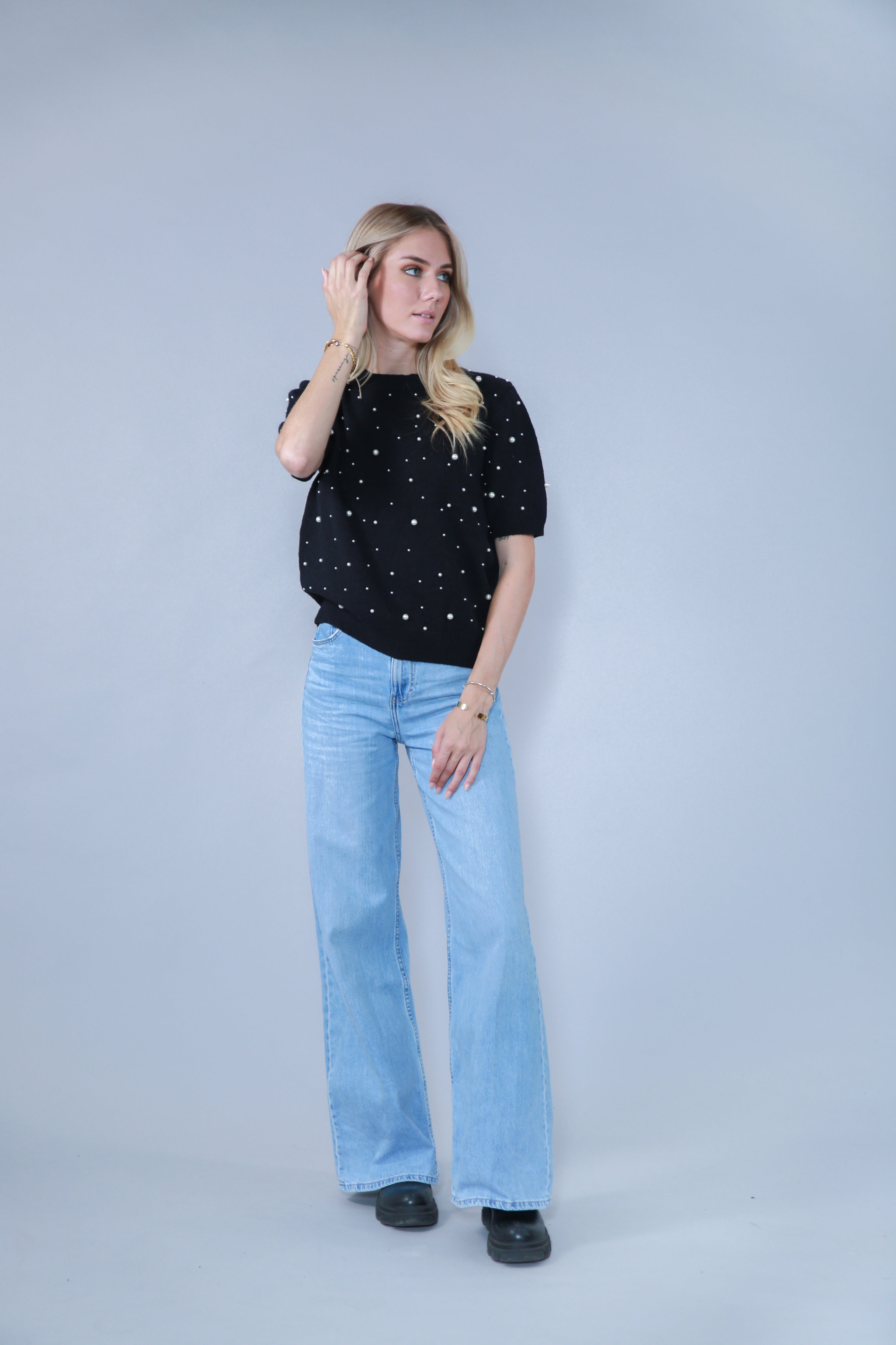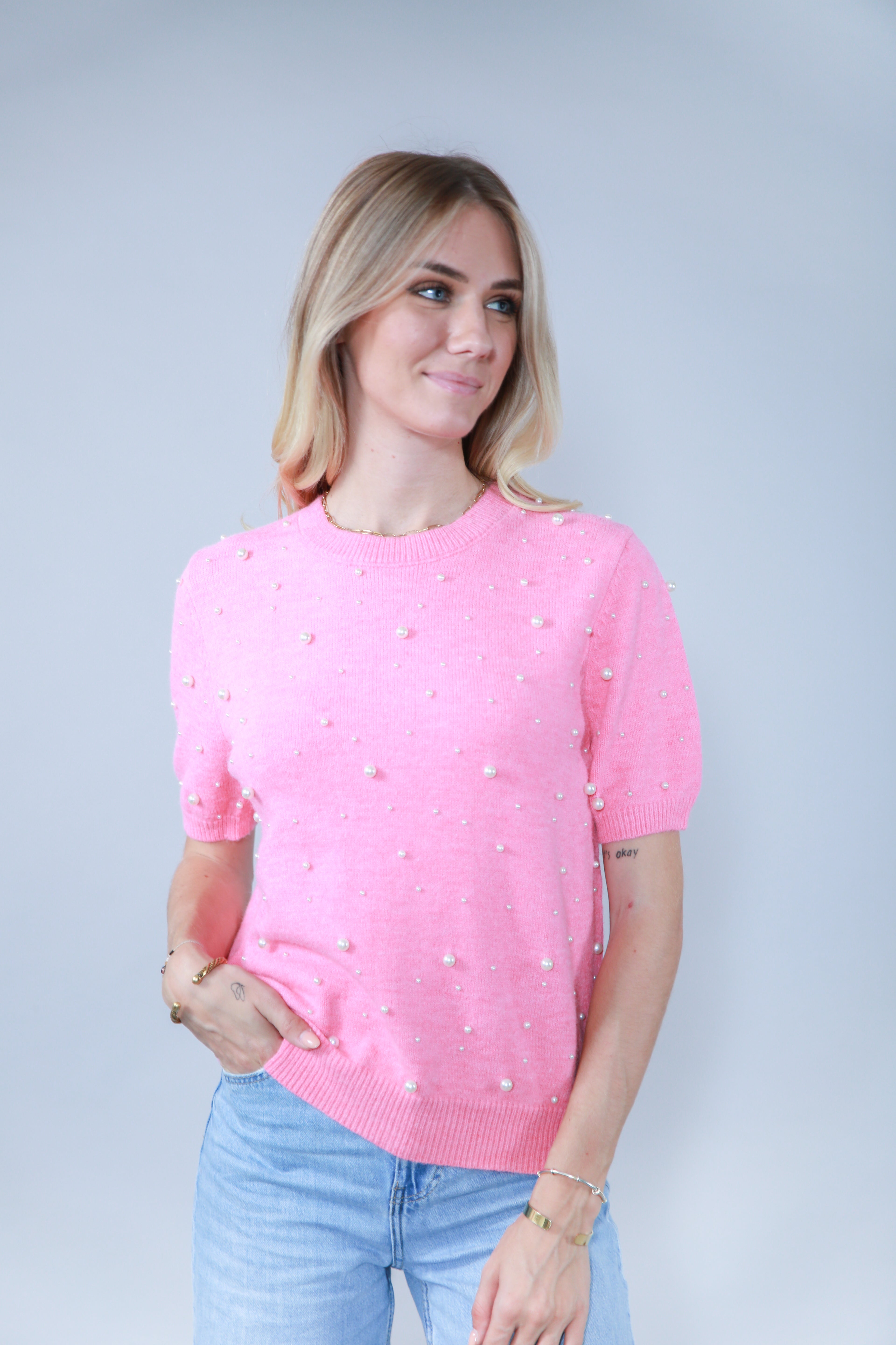 • TOP MANCHES COURTES AVEC PERLES EN MAILLE